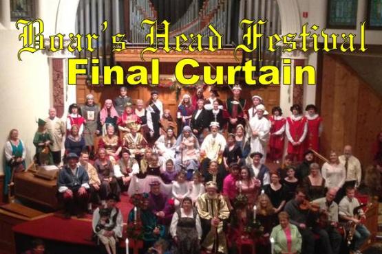 There will be no Boar's Head Festival in 2018. ~ Final Curtain Falls On The Boar's Head Festival! It is with a heavy heart that I make this announcement. It has been a very difficult decision! To everything there is a season...and the time has come. As we all get older, it is more and more difficult to pull this off. I want to thank all the folks who have helped make this happen over the 27 years...creating memories for ourselves and for numerous audience members. It was a great run...! I thank each and every one of you. None of it would have been possible without you! Love you all!!! We have been like a huge family with a reunion every year at Epiphany! But my mother's voice prodding me onward to continue has faded...and been replaced by the melancholy realization that the time had come to put it to bed! I did retire 7 years ago, after all! I still have the plaque! Ha! So Happy Thanksgiving...and Merry Christmas to all...Sprite and Monk skipping into the sunset! Glory to God in the Highest....and Peace on Earth! Deb Storrs |